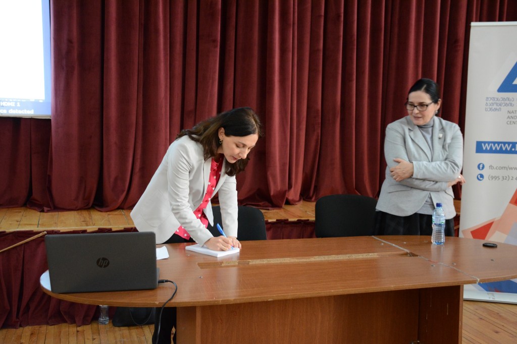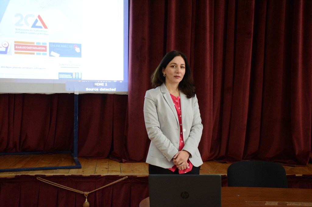 On Monday, the 27th, another meeting was held in Kutaisi. University entrants from different schools attended the meeting. The Director of the NAEC Dr. Sophia Gorgodze and Mrs. Maia Gabunia the Head of Examinations Process Management Department delivered the presentation to the guests regarding the admission requirements, registration and other terms and conditions for the upcoming Unified National Exams 2023. The second part of the meeting was dedicated to an interactive Q & A session.