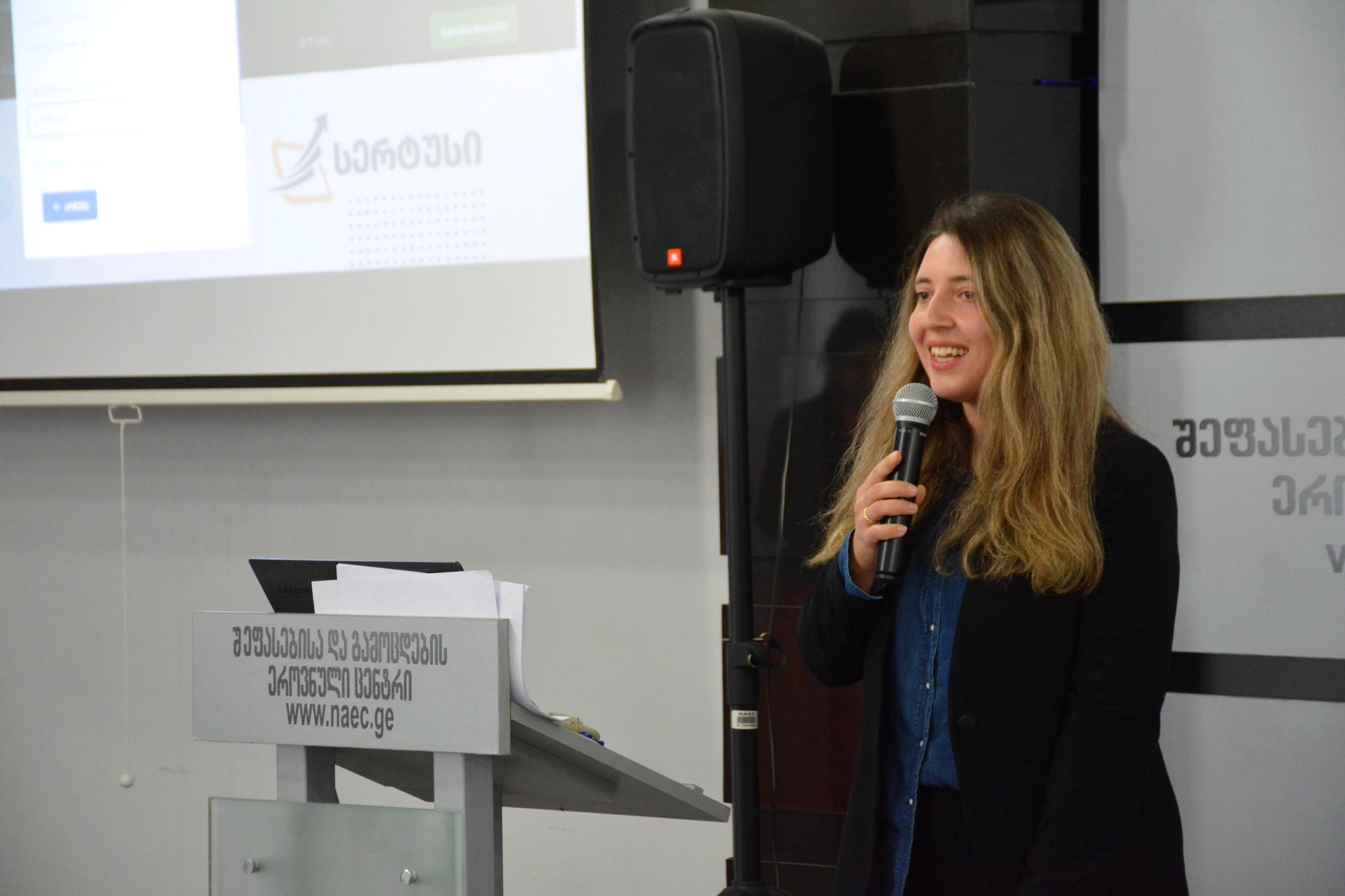 During the presentation the author of the project, the Head of Foreign Languages Subject Group Rusudan Tkemaladze spoke about the contents of the test. According to Ms. Tkemaladze the test evaluates examinee’s level of grammatical structures, vocabulary, as well as reading, listening, speaking and writing skills.