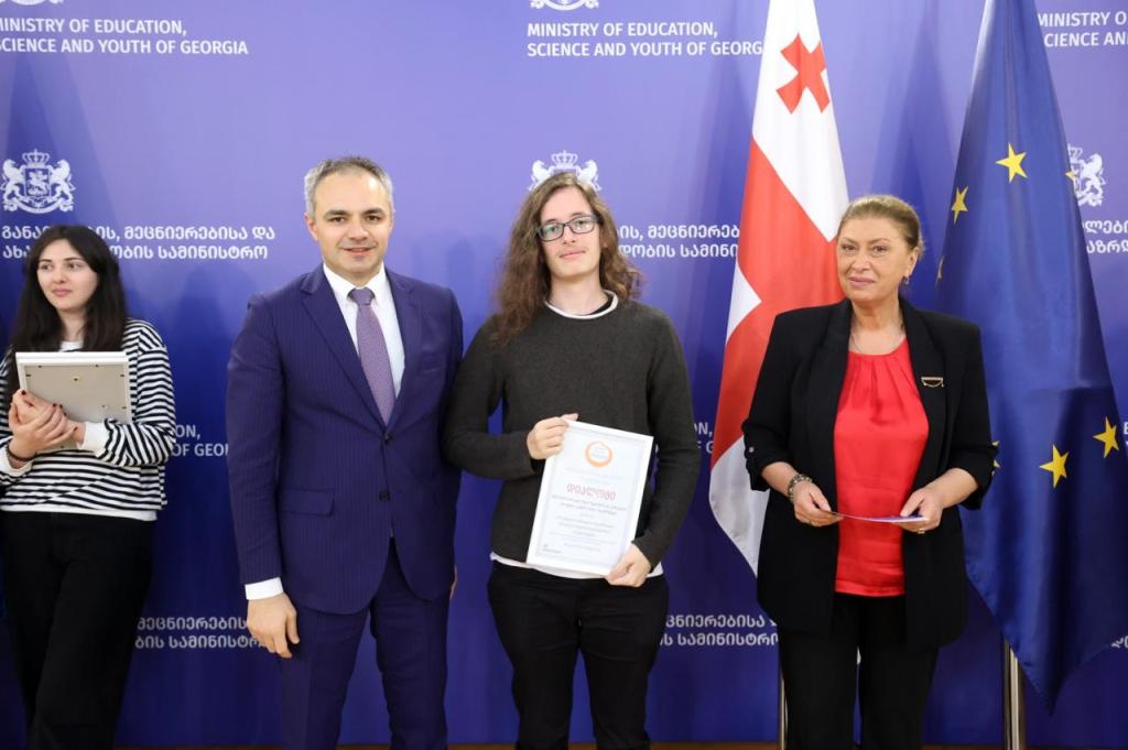 On Thursday, the 17th of October the winners of the National School Olympiad 2023-2024 academic year were awarded by the Minister of Education, Science and Youth of Georgia, Aleksandre Tsuladze, and the Director of the National Assessment and Examinations Center, Nino Tsereteli.